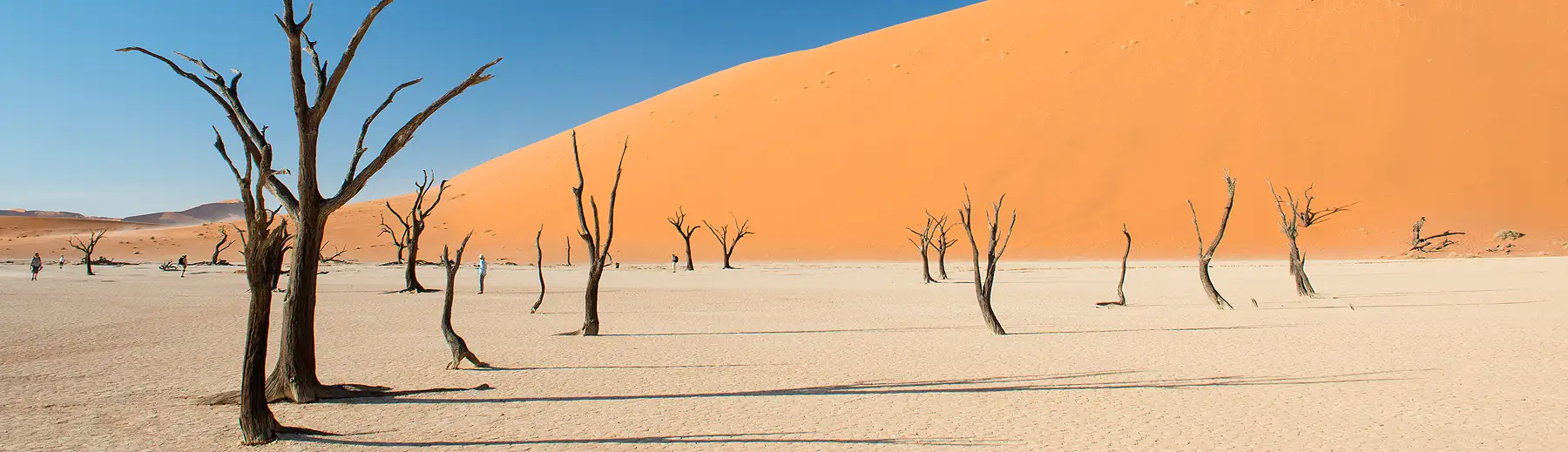 We experience the otherworldly beauty of Sossusvlei, where towering burnt-orange dunes contrast against bleached white pans and ancient camelthorn trees, creating an iconic landscape. We explore the haunting Skeleton Coast, where windswept shores, and vast Cape fur seal colonies paint a scene of raw, untamed wilderness.