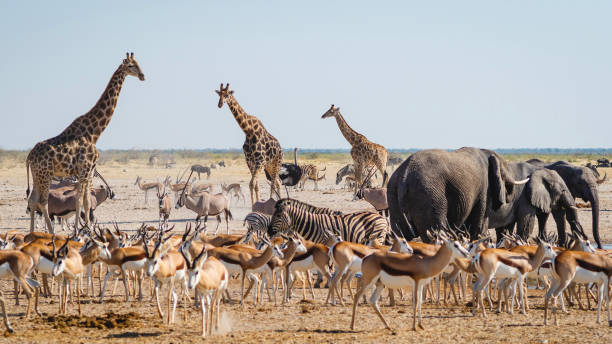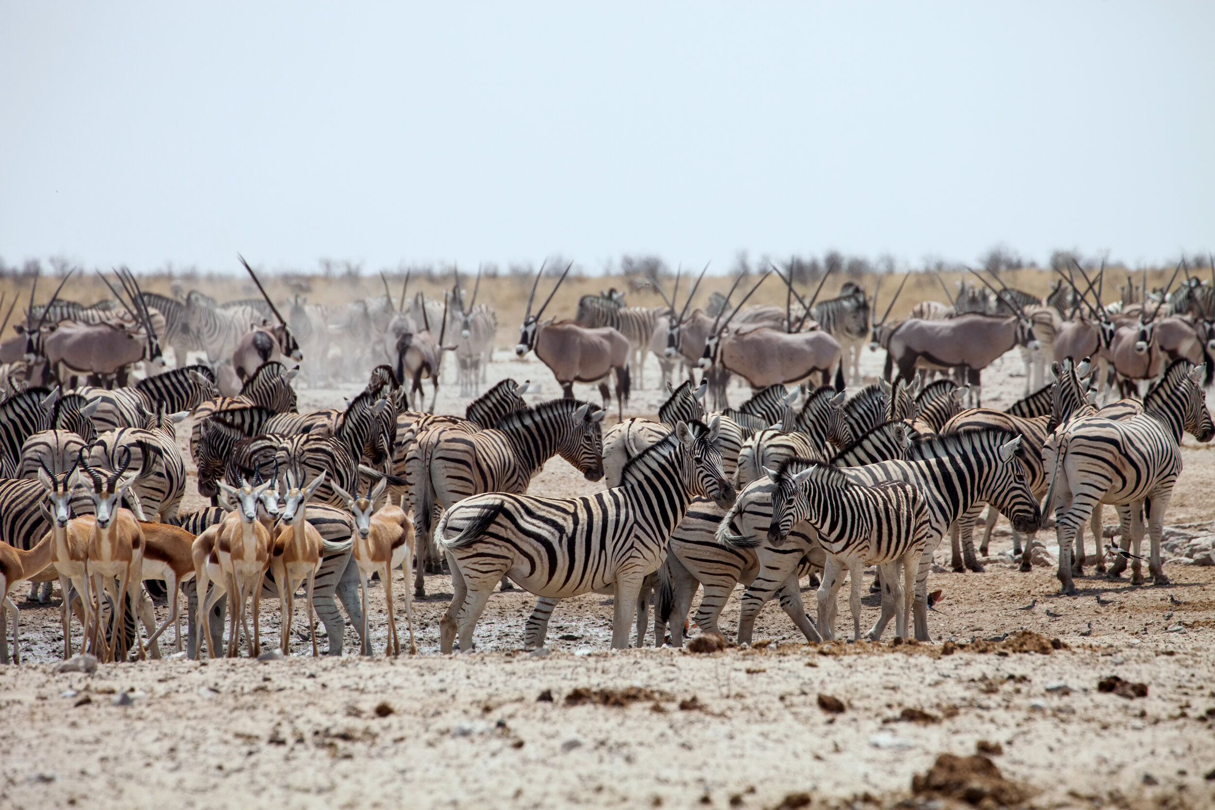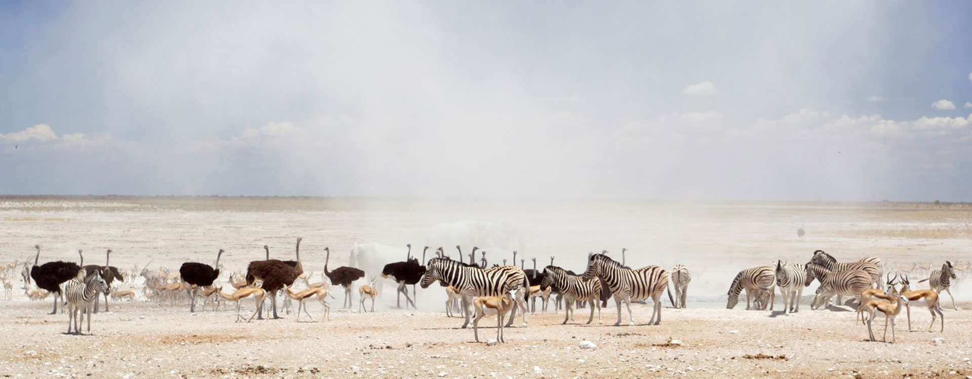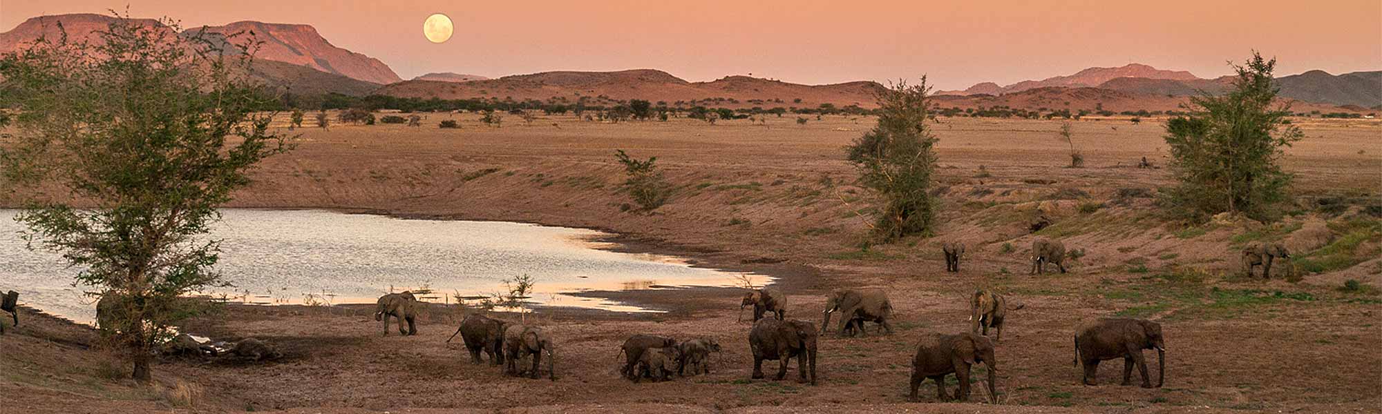 We experience the thrill of Etosha’s legendary waterholes, where close encounters with rhinos, lions, elephants, and giraffes unfold against stark salt pans and shimmering mirages.